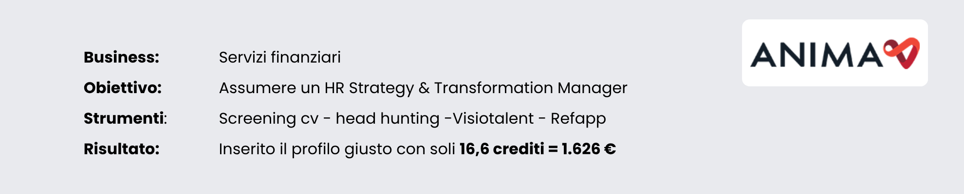 Abbiamo definito insieme la job description e avviato subito un processo di head hunting e screening mirato.