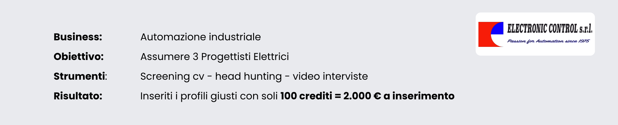 Il tutto con l’utilizzo di 100 crediti del pacchetto acquistato, equivalenti in media a 2.000 € a inserimento.
